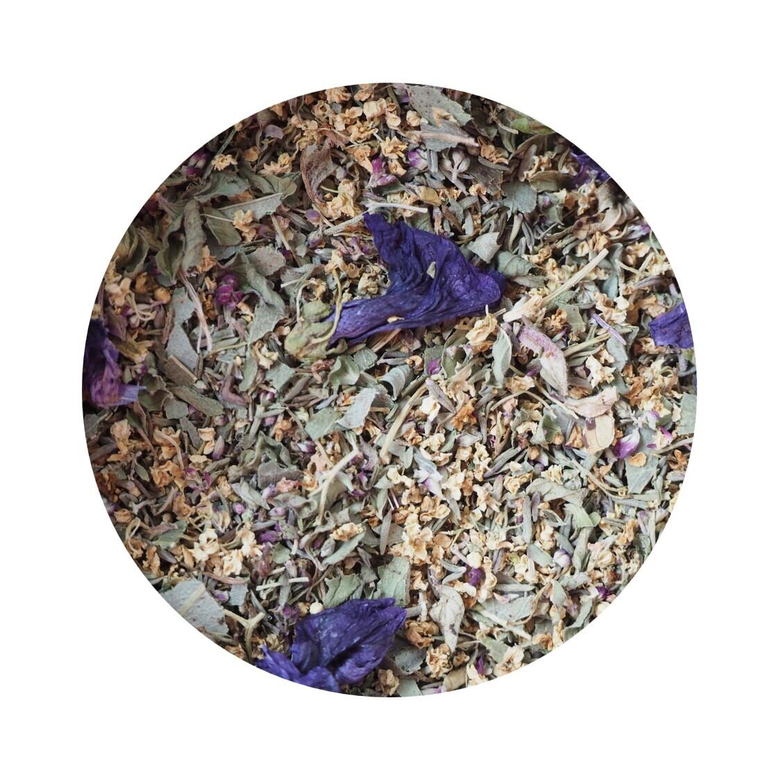 秋冬のうるおいブレンド。 ユーカリとタイムの開放感あふれる香りが広がり、深呼吸の手助けをしてくれます。 乾燥から心身を守りながら、毎日のコンディションをととのえる力強いサポートをお届けします。 原材料:ユーカリ、コモンタイム、エルダーフラワー、オレガノ、ブルーマロウ 重量:17g(ティーポット約8回分) *どのブレンドの組み合わせでも5個まではクリックポストでお届けいたします。