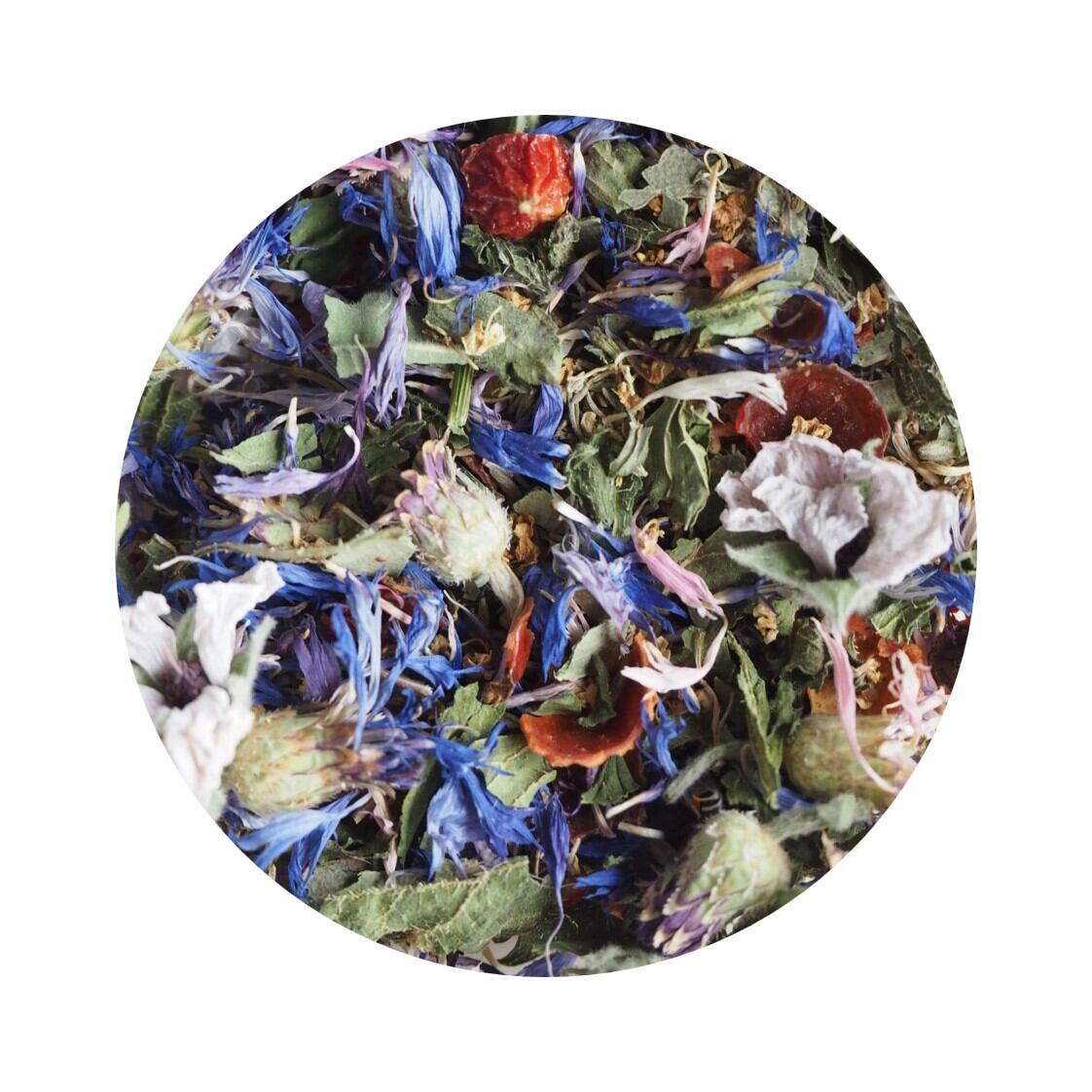 春のムズムズ、イガイガ、ゴロゴロ感へのメンテナンスハーブティー。 芽吹きとともに外出が億劫になる方に。 ハーブティーでケアをしたい方に。 春を元気に過ごしたい方に。 原材料:ローズヒップ、コモンタイム、ユーカリ、コーンフラワー、エルダーフラワー、ネトル、マーシュマロウ 重量:11g(ティーポット約7回分 / マグカップ約14杯分) *どのブレンドの組み合わせでも5個まではクリックポストでお届けいたします。